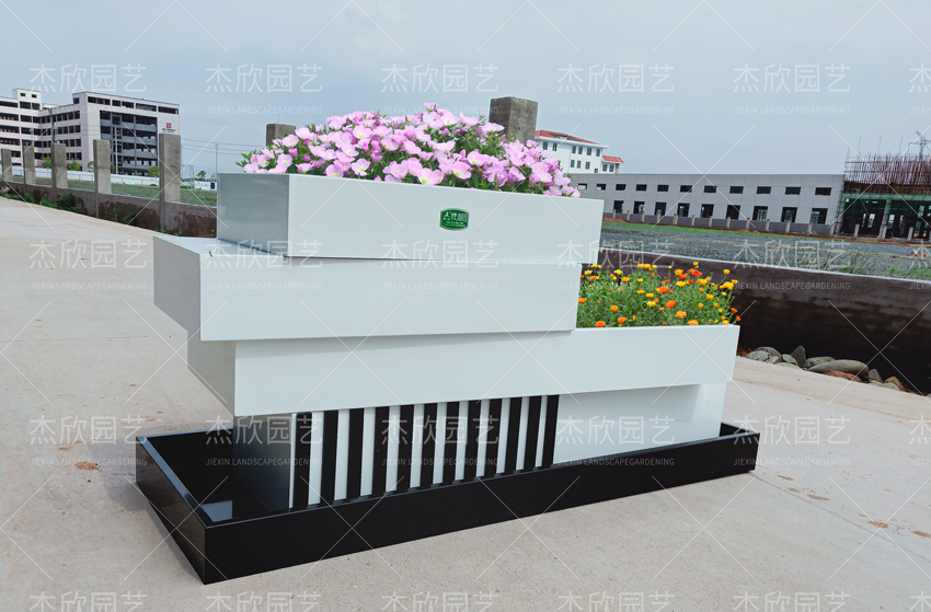 花箱的風(fēng)格表現(xiàn)為現(xiàn)代風(fēng),與現(xiàn)代城市風(fēng)格融合無間