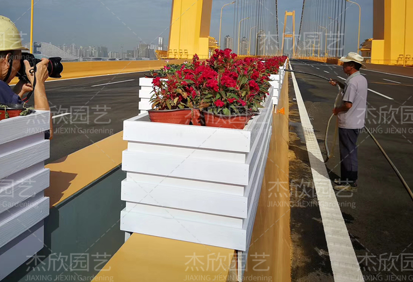 白色花箱,具有鮮明的橋梁提升效果。不僅搭配草花富有活力,而且經(jīng)久耐用、防腐耐磨。