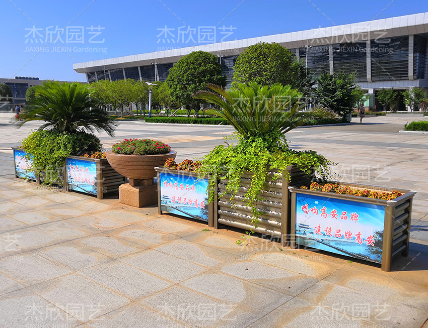 鋁合金材質(zhì)的花箱有常規(guī)款和貼畫款。常規(guī)款比較簡(jiǎn)潔,適應(yīng)性強(qiáng)。貼畫款內(nèi)容主要有文明城市內(nèi)容、城市文化內(nèi)容。