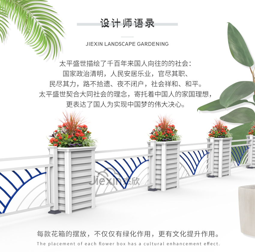 白色花箱護(hù)欄具有提亮街景效果,而且美觀大氣。