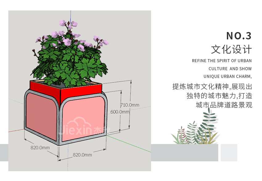白色花箱護(hù)欄與各類草花搭配,也能彰顯街道整潔美觀的效果。