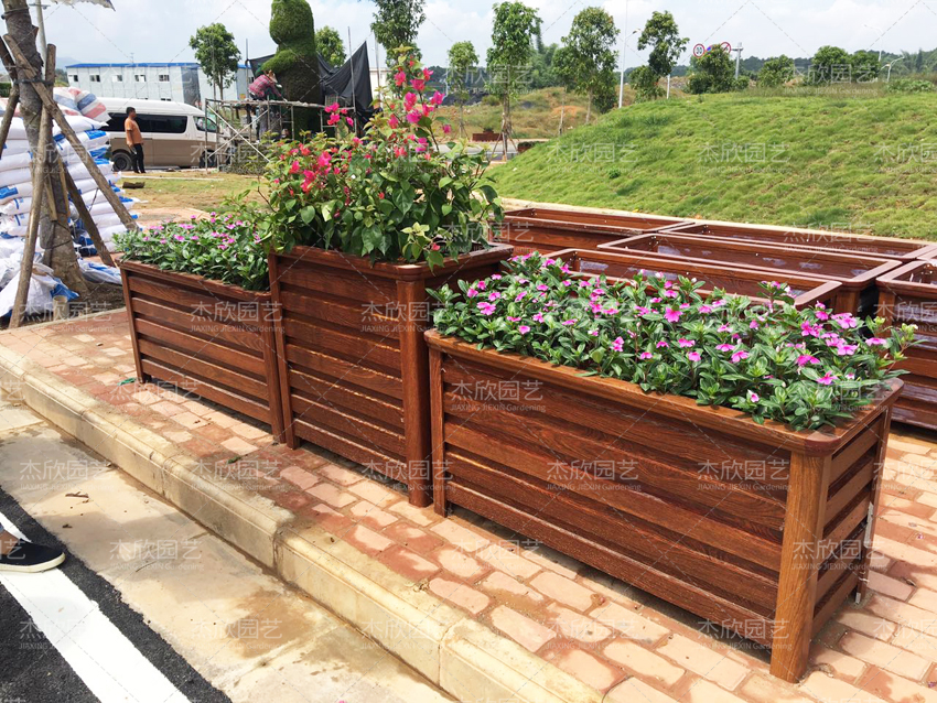 這些放置在室外的花箱,材質不同,性能不同,適合不同的場景效果。從材質上可以分為防腐木花箱、PVC花箱、鋁合金花箱、不銹鋼花箱。這些花箱都有哪些特點呢?