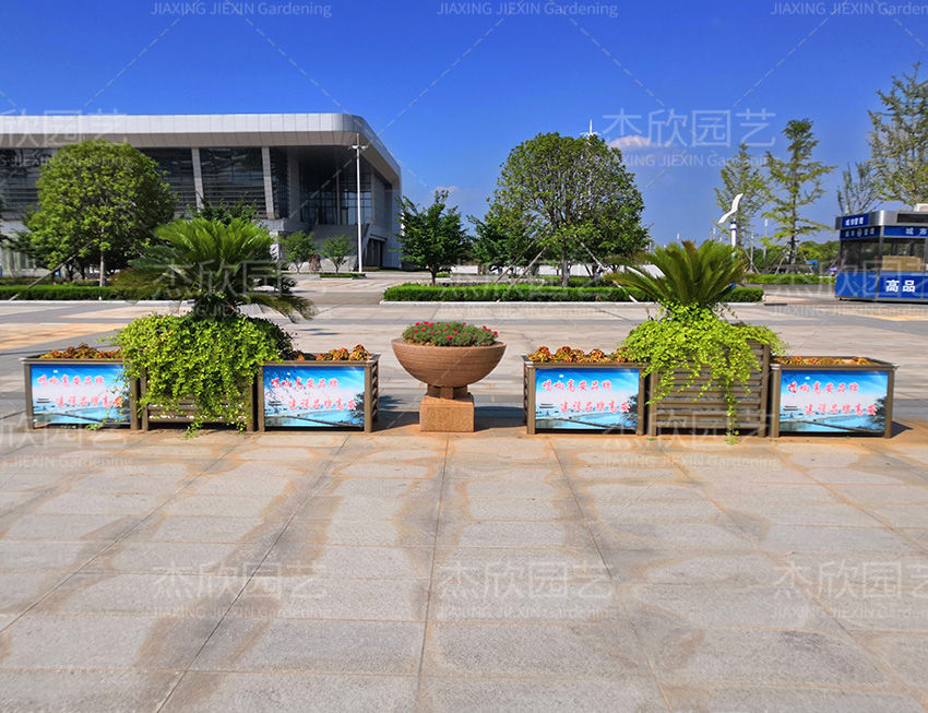 組合花箱以造型簡單為特點,能夠廣泛適應(yīng)場景,起到景觀提升的作用。除此之外,貼畫組合花箱,在組合花箱的基礎(chǔ)上,融入一些特色文化元素,展現(xiàn)出豐富的城市文化氛圍。