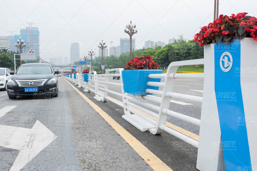 藍(lán)色船只在巨大海浪下一往無前,比喻城市在發(fā)展過程中心懷大志、勇往直前。這樣一幅充滿精神力量的畫卷,由精心打磨的花箱和護(hù)欄構(gòu)成?;ㄏ湓诘缆穲鼍爸胁粌H有綠化作用,更有文化提升作用。乘風(fēng)破浪花箱展現(xiàn)出城市發(fā)展中的精神力量、價值影響。