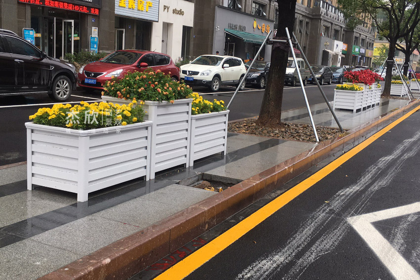 像城市的公園、廣場、街道,商業(yè)區(qū)都不適合使用花箱護欄,那么我們就可以使用組合花箱。