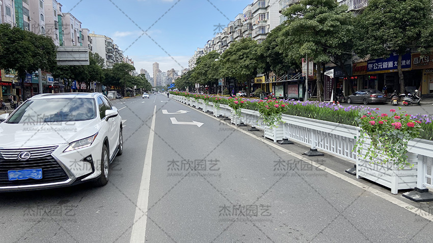 道路隔離花箱不僅可以使用在中央隔離帶,也可以使用在機非隔離帶。
