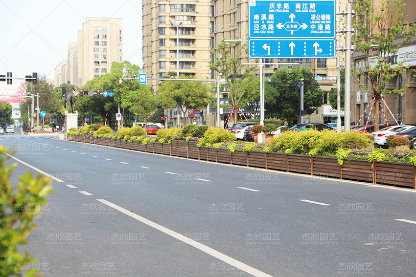 隔離帶花箱的款式選擇很多,但要注意的是,在花箱高度和寬度上尤其要慎重。計算好花箱加上花草的高度,花箱寬度在分隔帶之內(nèi),不影響道路交通。