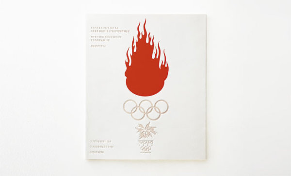 長(zhǎng)野奧運(yùn)會(huì)節(jié)目?jī)?cè)使用了白色松軟紙張,以壓凹和燙透表現(xiàn)技法,使紙張呈現(xiàn)出冰一般半透明效果,讓人們由冰雪的視覺(jué)效果聯(lián)系到冬季奧運(yùn)會(huì)