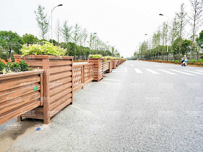 首先就花箱的顏色來(lái)說(shuō),使用的是黃檀木色。黃檀木色不刺眼,人們望過(guò)去會(huì)很舒適。黃檀木色也會(huì)使人聯(lián)想到自然,顏色更讓人放松,可以減少焦慮情緒。網(wǎng)格花箱中網(wǎng)格的使用也消除道路隔離的逼仄感,讓人感覺(jué)更自由、視野更好。