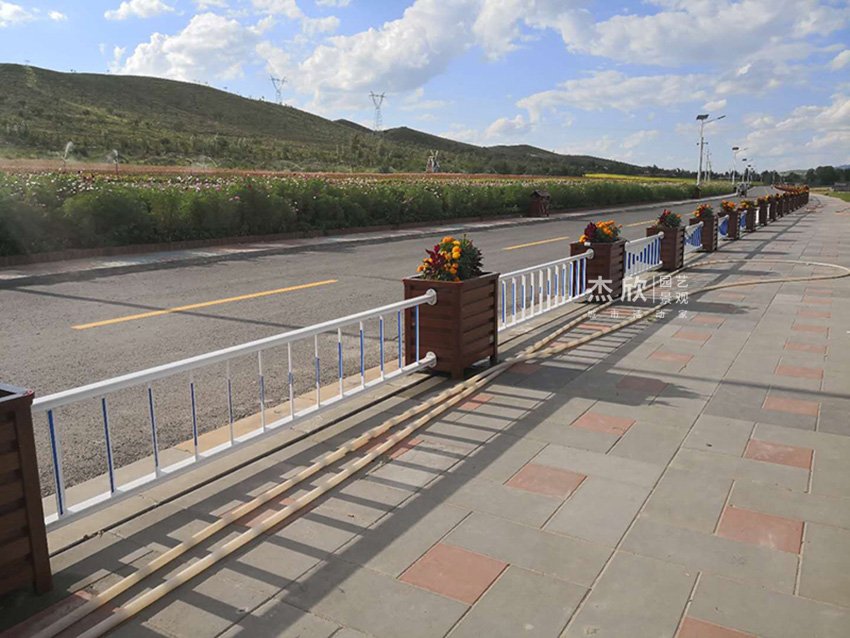 常規(guī)的花箱護欄也能帶來意想不到的效果?;ㄏ渥o欄的選擇上,盡可以貼近場景的特點,與城市背景融為一體。