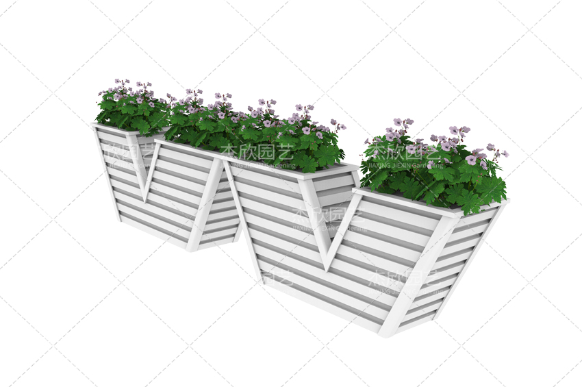 W型花箱,和常規(guī)花箱相比,新穎別致、富有造型??炊嗔顺R?guī)花箱,不妨一試。雖說(shuō)新穎,但也與道路很合適。白色外觀清新自然,W型和諧耐看