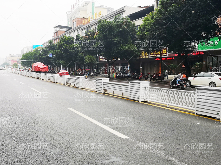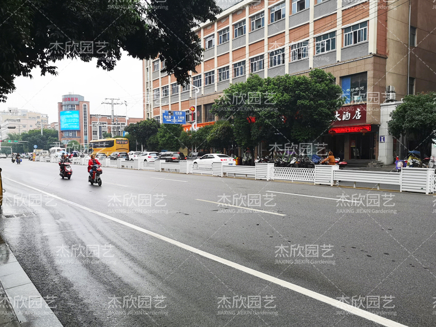 景觀效果:白色花箱護(hù)欄提亮效果明顯,干凈整潔,綠化效果好。