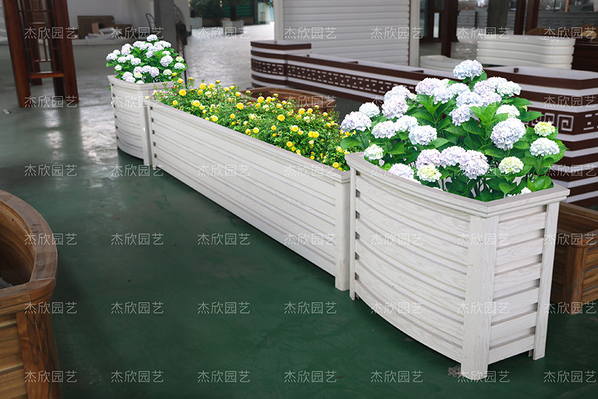 這款鋁合金花箱比較特別,是白橡木色,非常的清新
