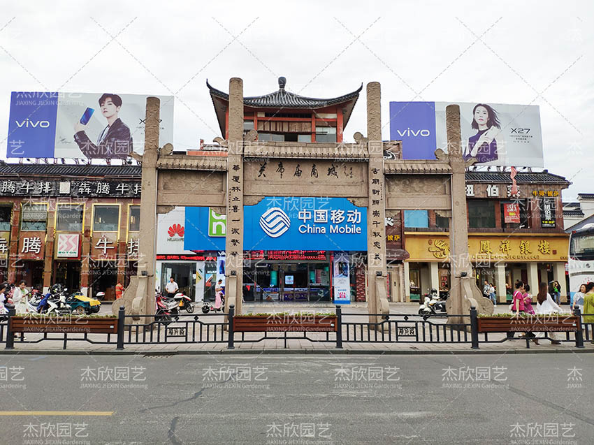 花箱護欄不僅起隔離綠化作用,更與步行街融為一體,增添美感。