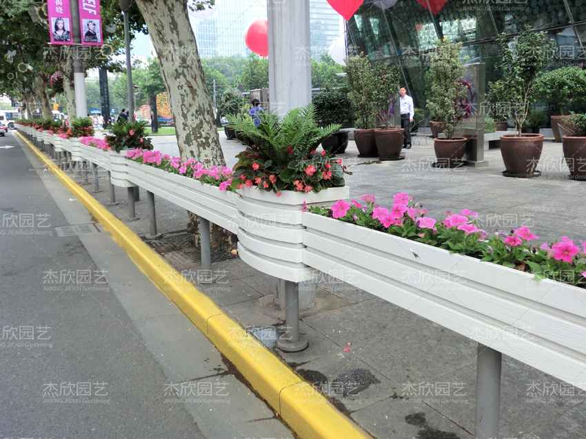 花箱護(hù)欄的花箱顏色以黃白紅為主,各類顏色搭配都有不錯的景觀效果。也是目前使用更多的道路花箱。